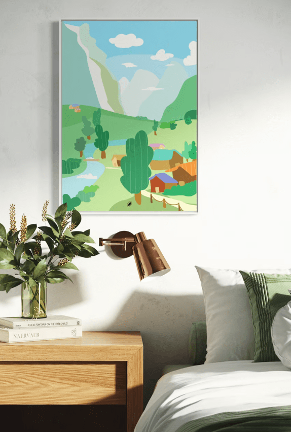집 안 곳곳 어디든 잘 어울리는 ‘행운 마을’처럼 행복 가득 찬 일상을 원하신다면 퍼플더스트의 힐링풍경 포스터로 집 안 곳곳에 자연의 기운과 행운을 채워보세요!